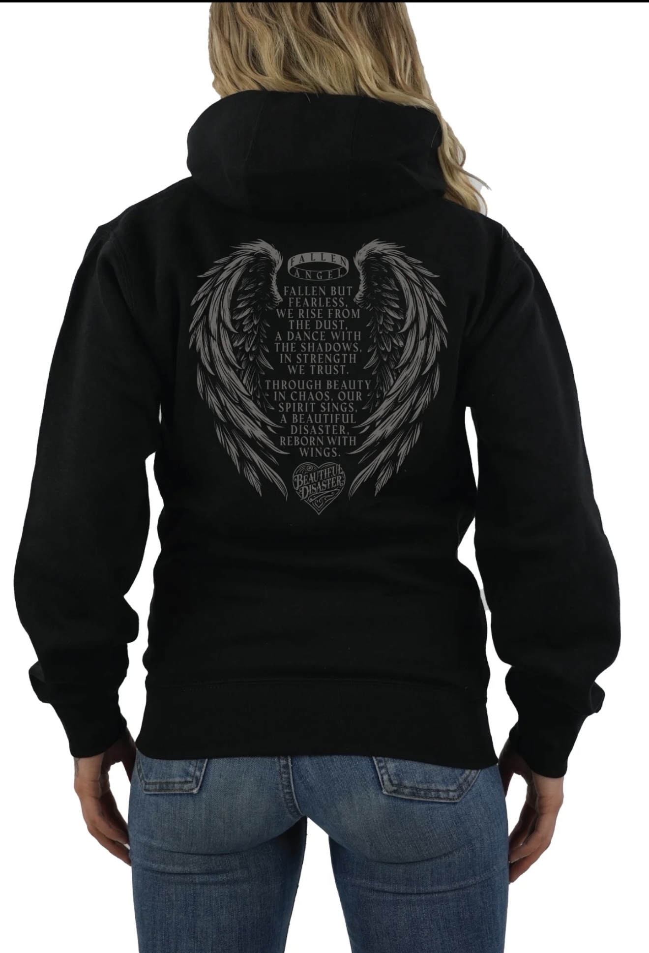 Crafted for comfort and designed to inspire, this hoodie features bold, intricate details from the Fallen Angel collection that symbolize the journey of falling and rising again. Soft, cozy, and empowering, it’s perfect for wherever your path takes you—because strength deserves to be worn proudly.