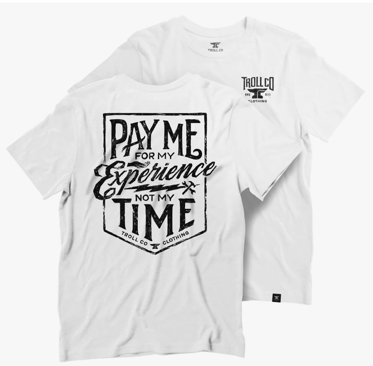 Pay Me Tee – Pay for Experience not Time, because hard work ain’t free. Whether you're turning wrenches, welding steel, or grinding through the daily hustle, you put in the time, the sweat, and the skill—now it’s time to get paid what you’re worth.